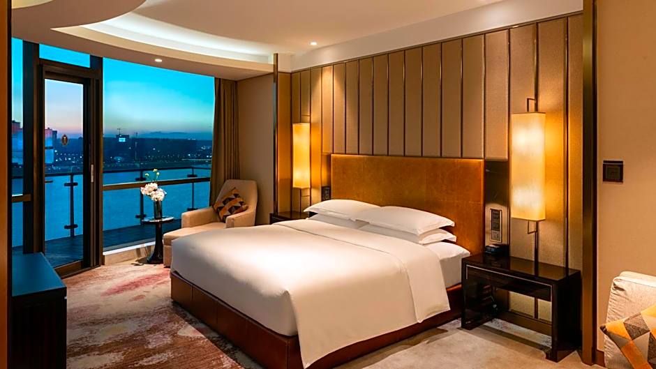 This room features a balcony with views of the river and executive lounge access.